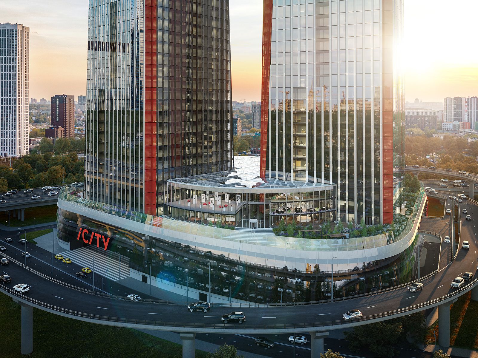В состав бизнес центра iCITY входят две башни с панорамным остеклением под названием «Time Tower» и «Space Tower» (общей площадью 147 800 кв. м), которые объединены между собой восьмиэтажным подиумом. Высотность башен — 141,2 и 256,7 метров (34 и 61 этаж соответственно). Деловой небоскреб является частью ММДЦ «Москва-Сити», и располагается на участке размером 2,06 Га, рядом с Центром международной торговли, выставочным центром «Экспоцентр», парками Красная Пресня и Фили.