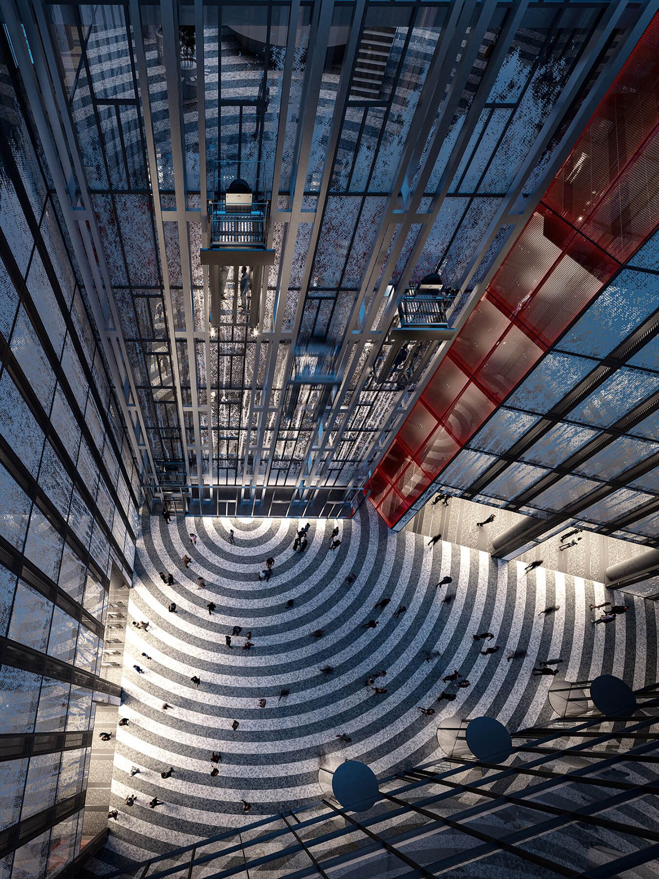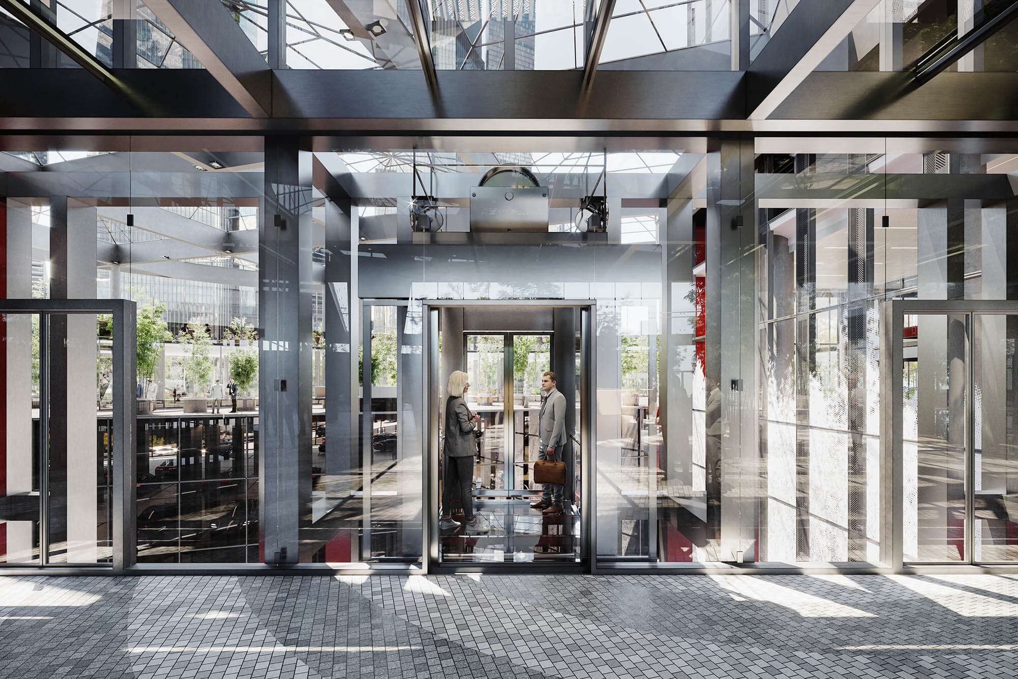 В бизнес-центре будут действовать панорамные лифты, инновационные системы обогрева и охлаждения воздуха, энергоэффективное светодиодное освещение, система биометрического доступа. Управление сервисами комплекса будет осуществляться через мобильное приложение. В восьмиэтажном подиуме разместятся фитнес-клуб с видовым бассейном, кафе, рестораны, торговая галерея, банковские учреждения, предприятия услуг, лаундж-зона, коворкинг-пространство и выставочный центр.