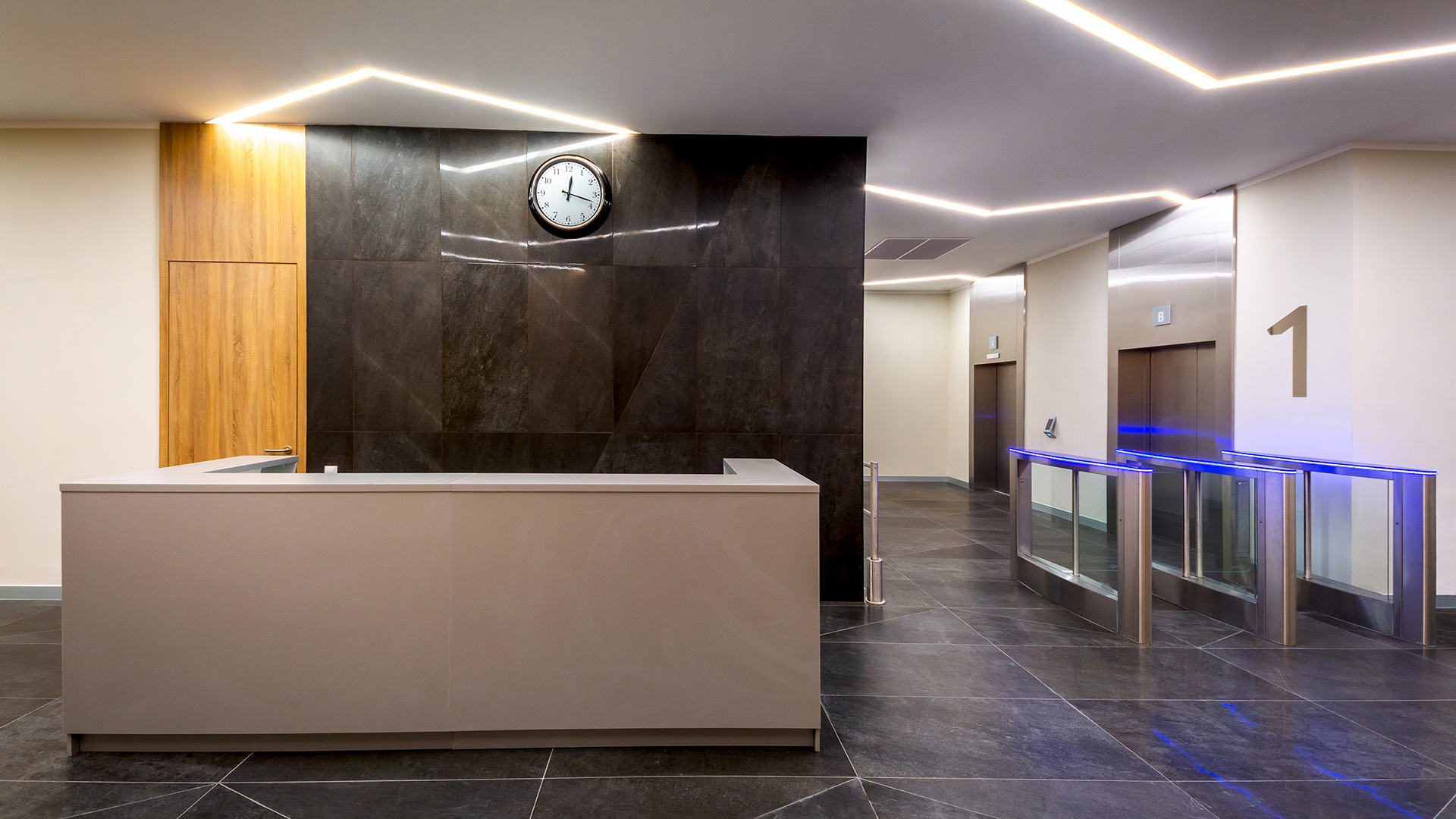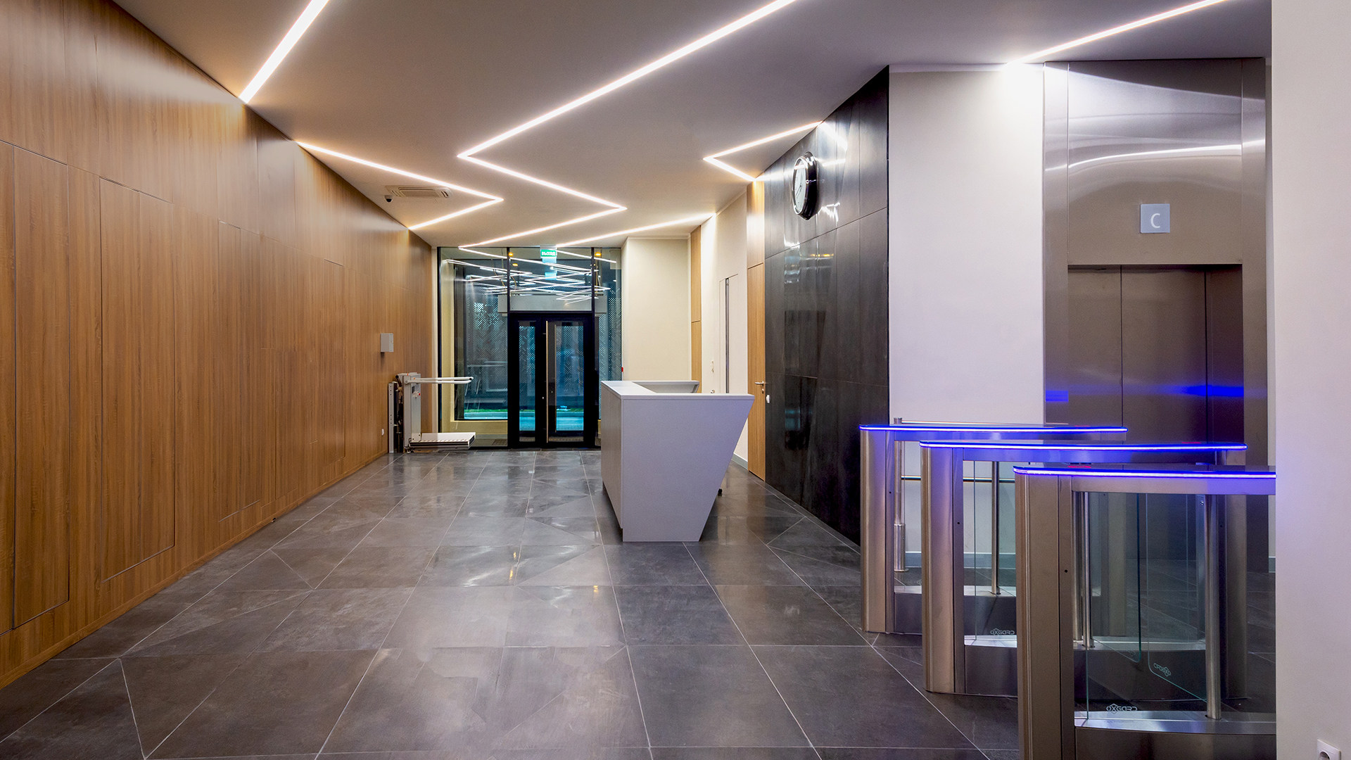 Инфраструктура первого этажа включает в себя столовую, кафе и рестораны и прочие необходимые инфраструктурные объекты офисно-делового центра. В офисно-деловом центре также предусмотрен подземный паркинг на 530 машиномест. Паркинг оборудован современными системами вентиляции и пожаротушения, а также системой контроля доступа. Вам будет комфортно парковать не только небольшой автомобиль, но и крупный внедорожник — для вашего удобства предусмотрены различные форматы машиномест.