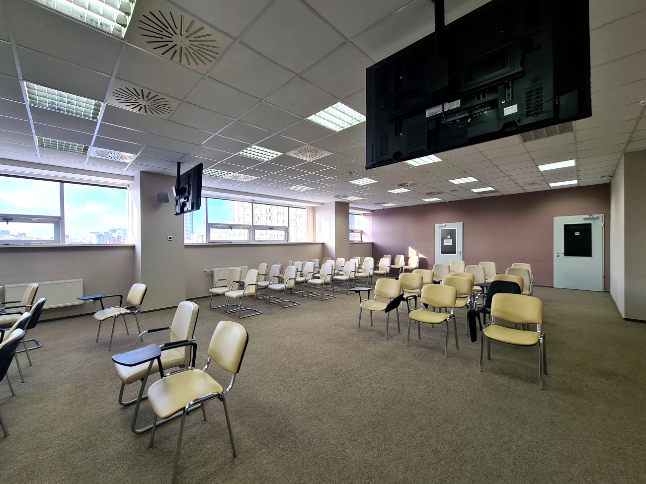 Центр насчитывает 8 этажей, занятых под современные офисные помещения различной площади. Наземный паркинг на 125 машиномест и 2-уровневый подземный паркинг. В здании действует столовая, услугами которого можно воспользоваться для организации питания персонала, и кафе.