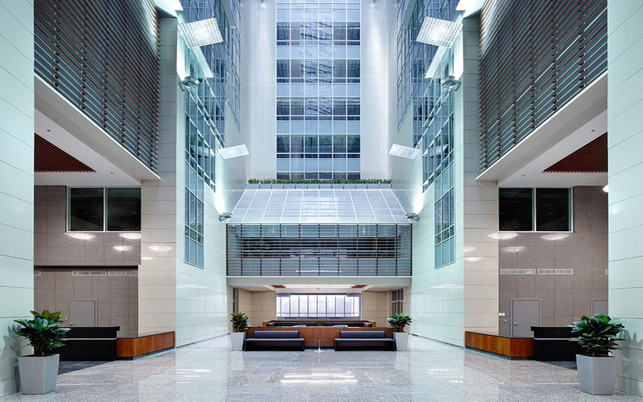 Среди особенностей оформления — обилие стеклянных и металлических конструкций. Здесь можно взять в аренду офис или блок офисов площадью от 164 до 12000 кв. м. Охрана и видеонаблюдение ведутся в круглосуточном режиме. На входе действует пропускная система. Здания оборудованы системами сплинкерного пожаротушения, приточно-вытяжной вентиляции и центрального кондиционирования. В башнях установлены 14 лифтов фирмы KONE.